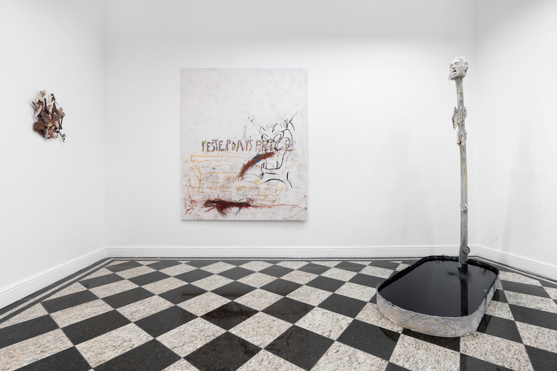 You enter the space and feel the tension. Is this, what you see, the result of looming chaos, or is it merely the calm before the storm? The walls rustle, pulse, you hear voices and shouting. Yet, there is utter silence. A strange odour hits your nose, thickening the ambiance; accompanied by echoes of ancient cries and different languages. Once adorable faces and mythological figures morph into eerie freaks from a nightmare. There is no peace, no understanding and no resolution. The continuous flow and energy, coupled with pressing gestures are the remnants of a fleeting madness.