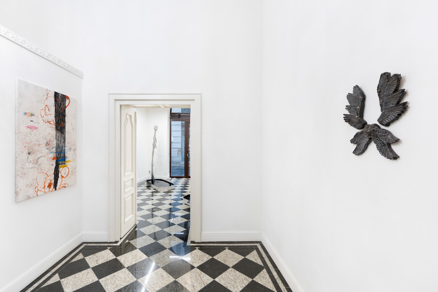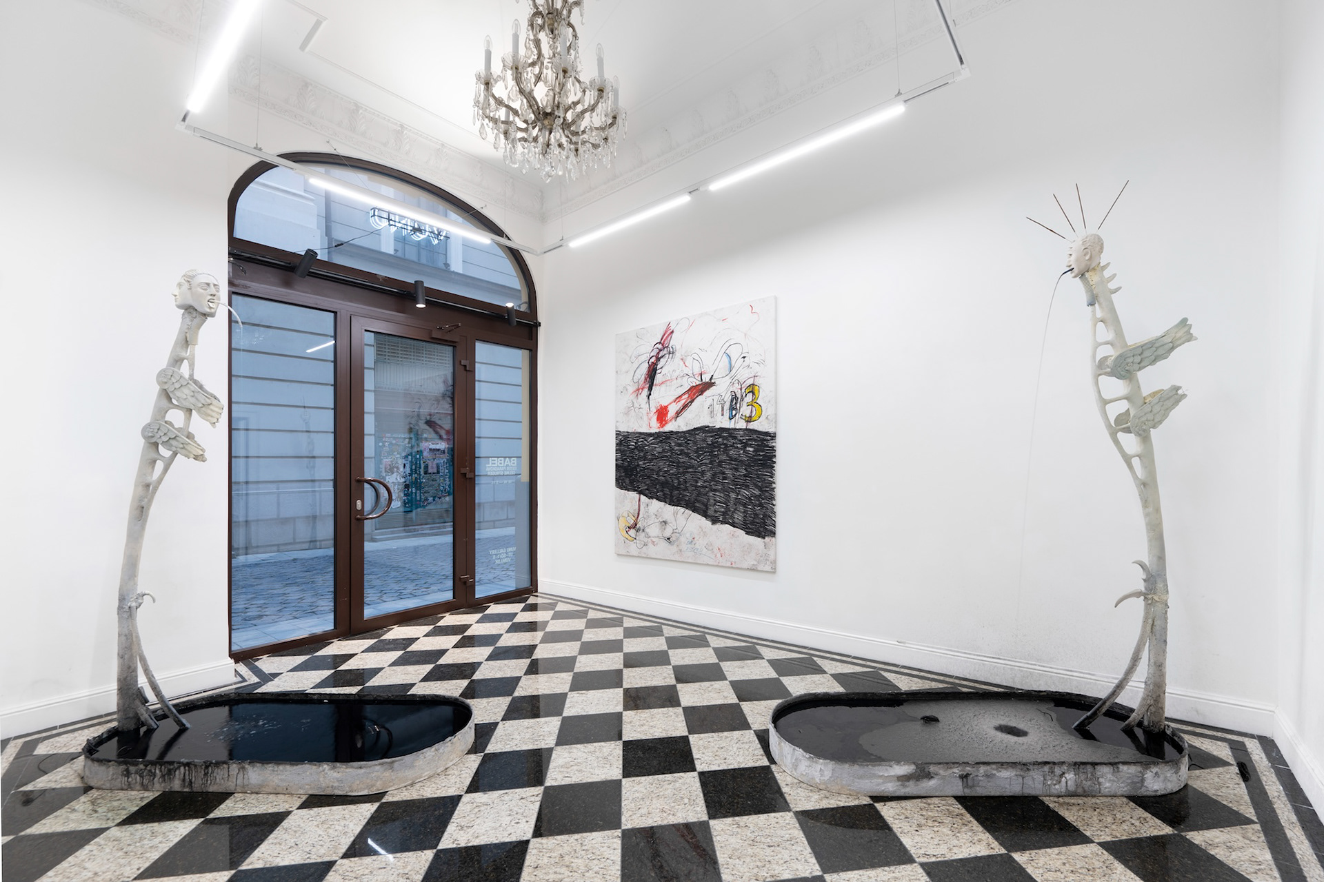 The exhibition BABEL presents a spatial dialogue between the works of the Vienna-based artist Céline Struger and her Prague-based counterpart Ester Parasková. This debut combination presents a variety of media along with different conceptual approaches. The selected works create an intense setting that engages all senses. The different narratives draw on popular culture, contemporary society, mythology or (fictional) history. The layering of ideas, mixing of content, visual expression and personal symbolism takes them into new contexts.