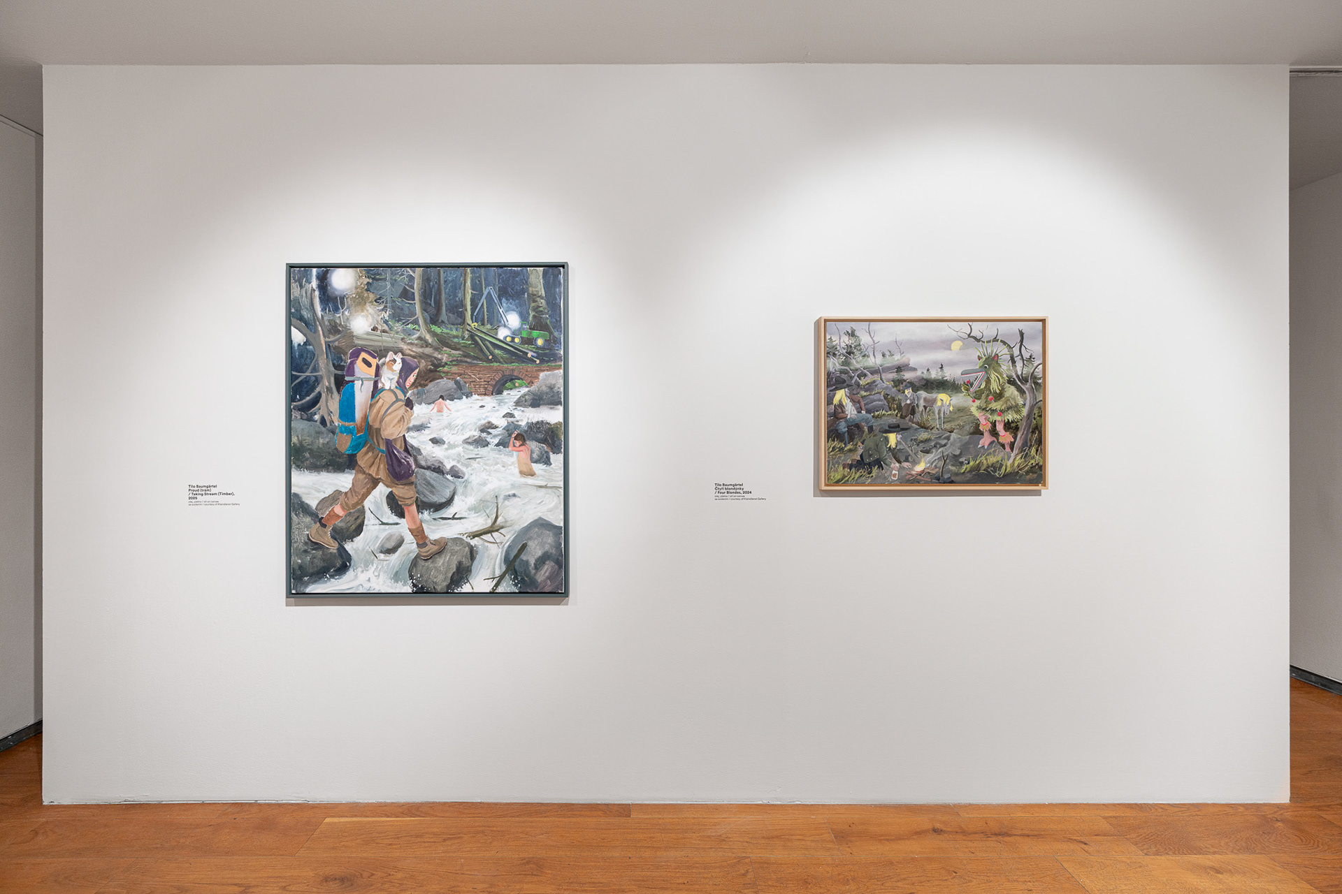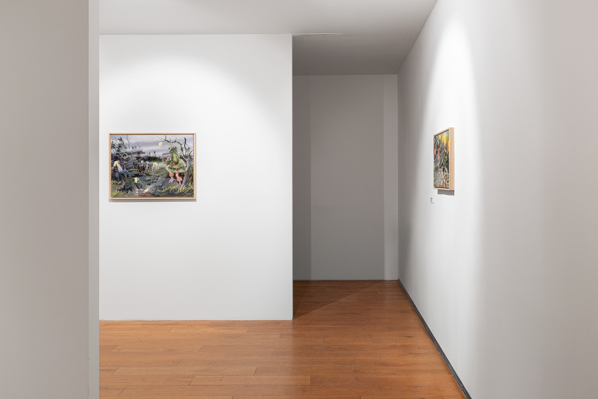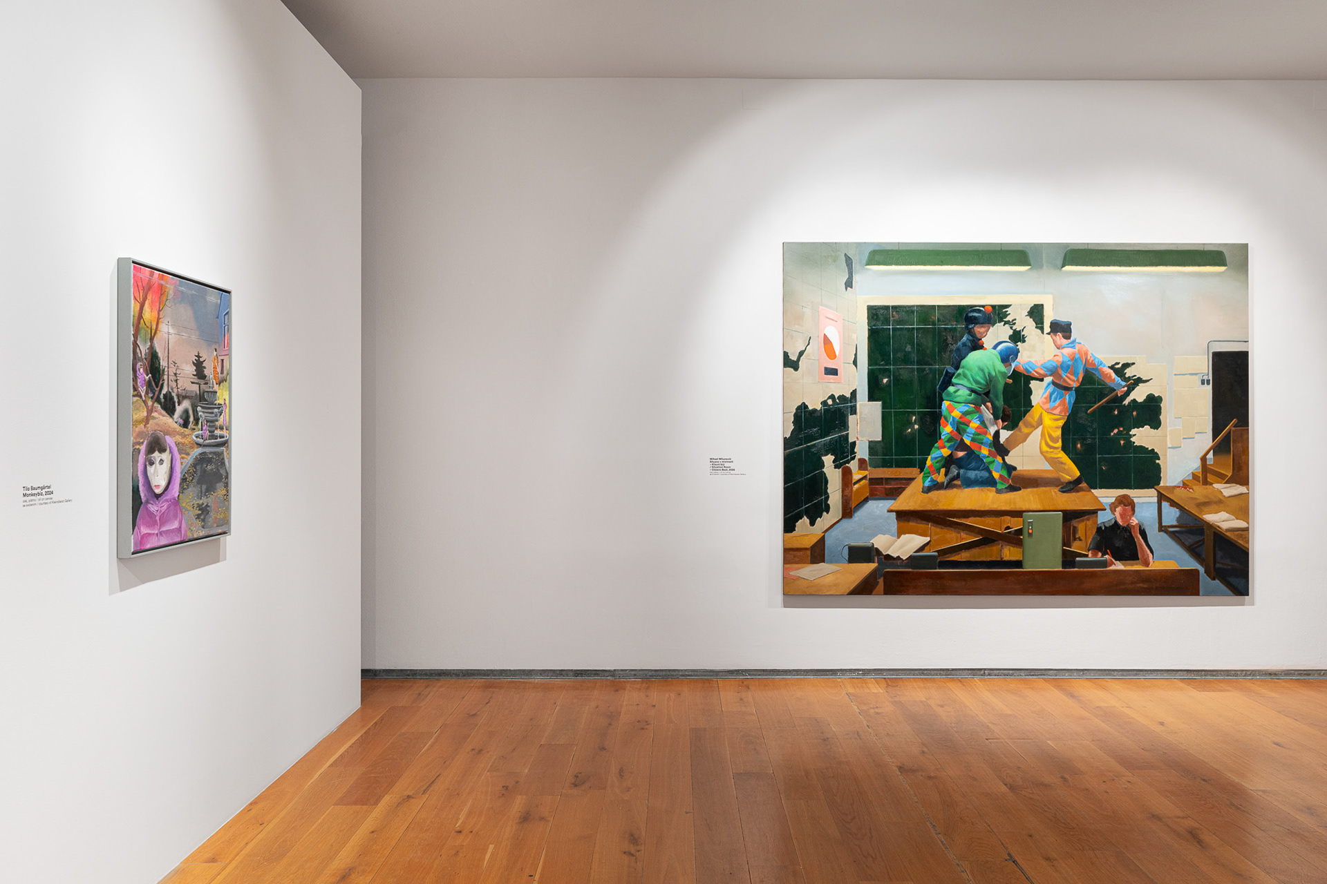 Both artists navigate non-linear narratives, capturing fleeting, emotionally charged moments woven with absurdity, dreamlike imagery, and traces of memory — or the illusion of it. They conjure a bleak, often self-contained realities governed by an internal logic, where scenes remain fragmentary and open-ended, unfolding within intricately staged metaphysical spaces. Their collage-like compositions form dense visual fields that invite introspection and ignite the imagination.