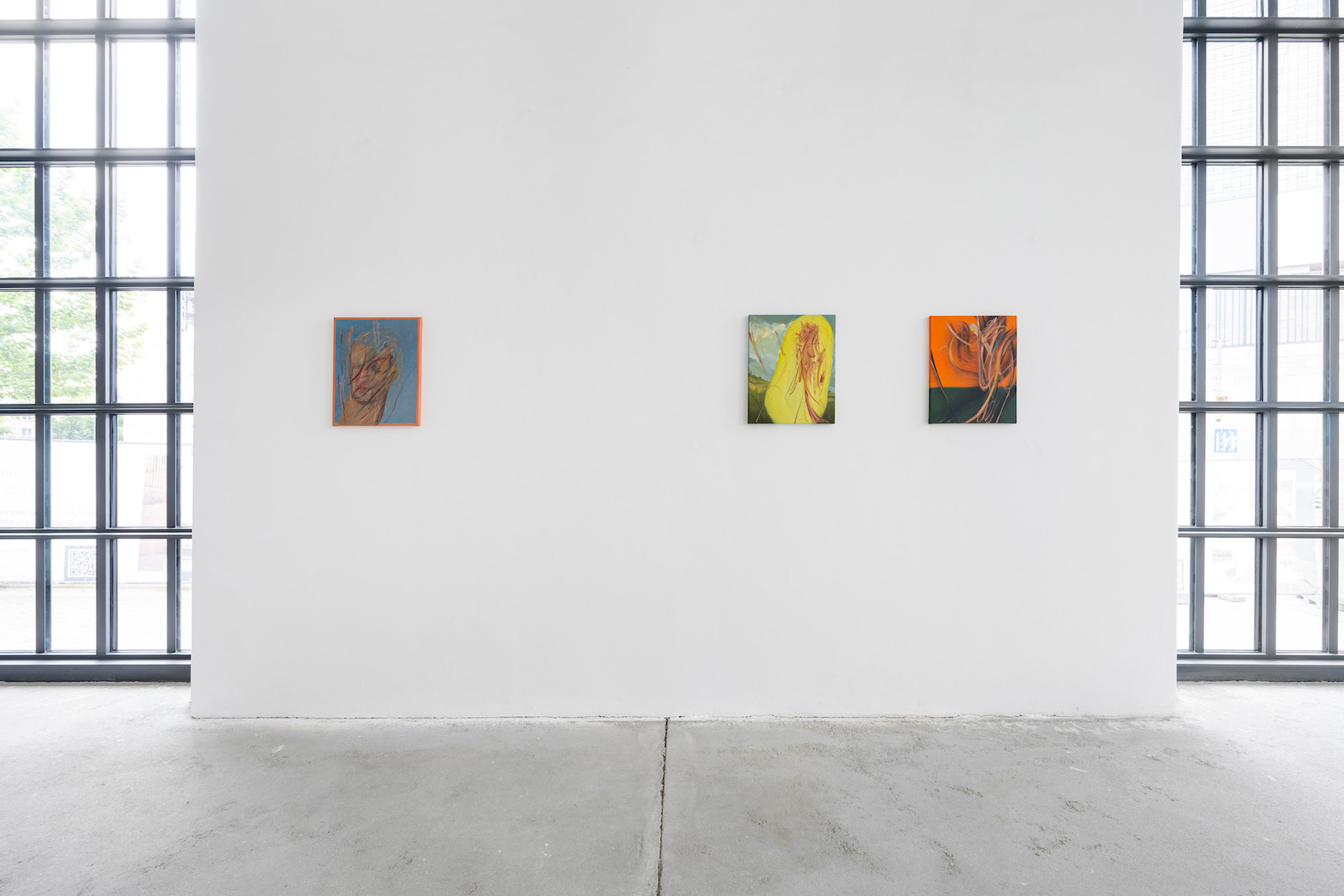 In his latest works, the Czech painter Jan Soumar continues to break down figural compositions, which he embeds in hints of non-specific natural scenery or simple coloured surfaces. On oil and acrylic canvases, he offers body fragments created by gestural brushstrokes. He alternates relaxed handwriting with realistic parts, thereby achieving a dreamy, at times romantic atmosphere anchored in dynamic movement. The gradual visual defragmentation brings about a thin border between abstract and figurative painting that lends space for one's own analysis and interpretations.