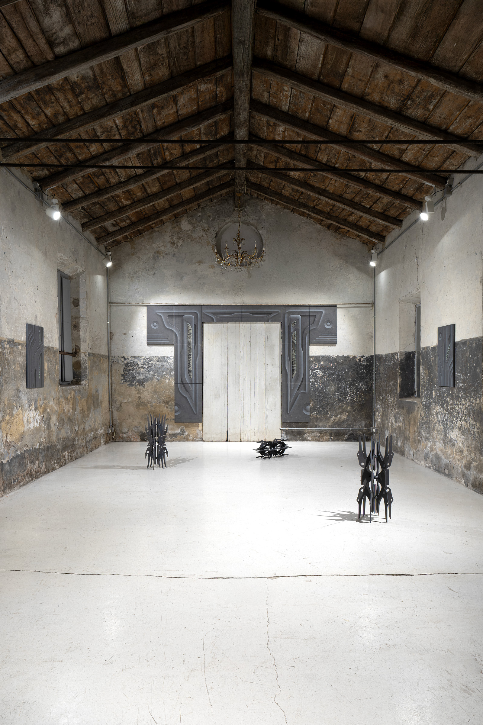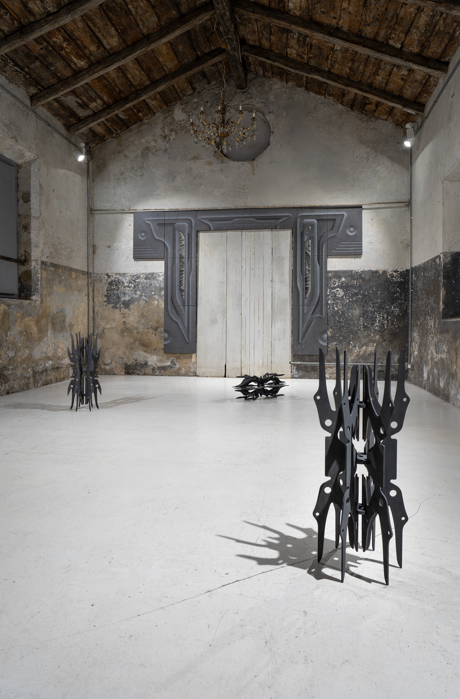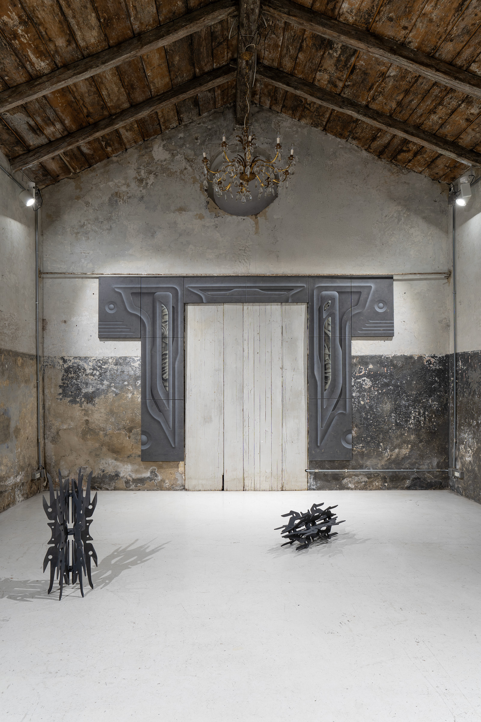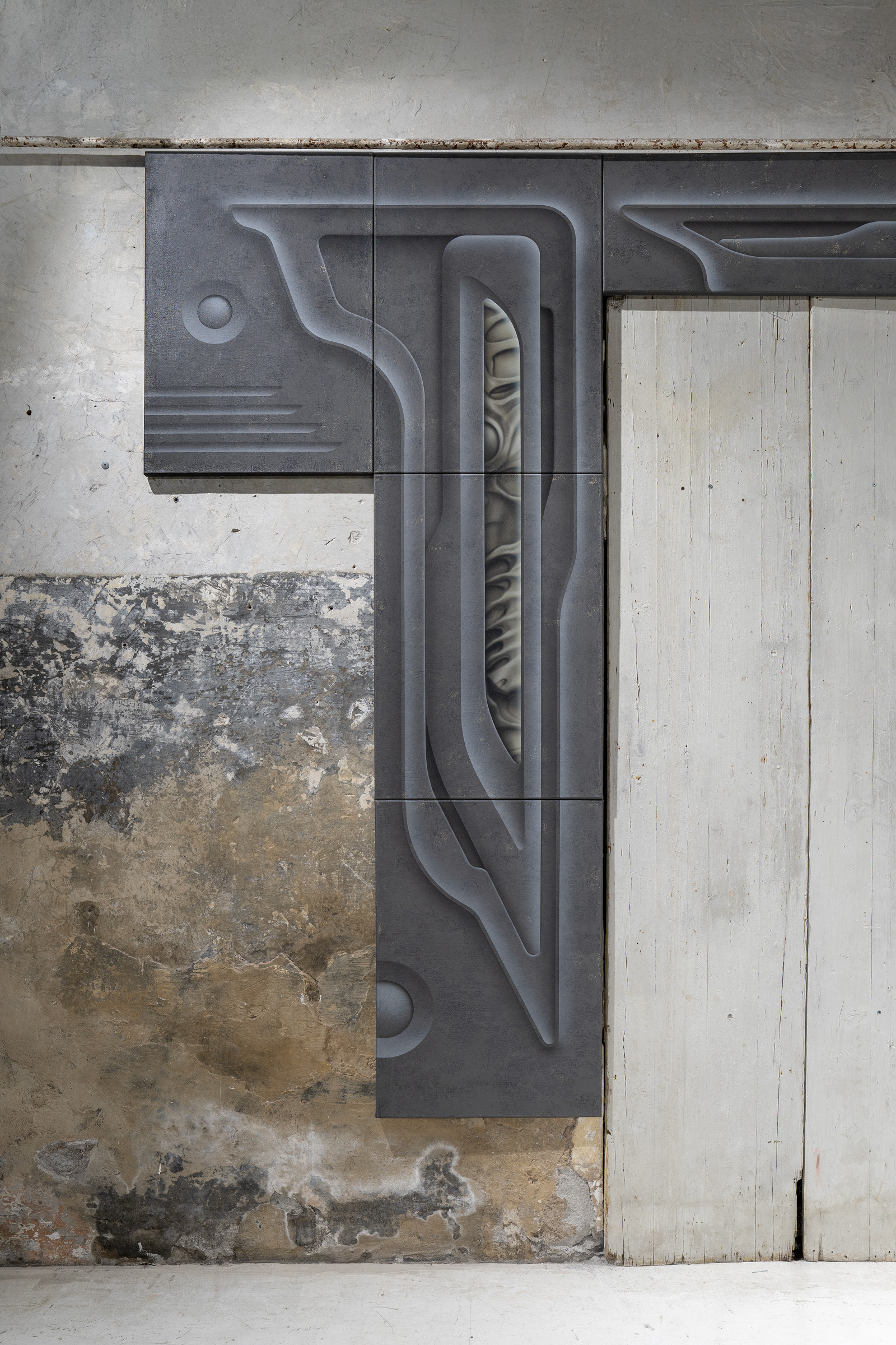 Centrum projektu tvorí maliarska inštalácia ARCH:3ON (2025), ktorá pretvára rám starých dverí na pomyselný portál medzi svetmi. Skladaním maliarskych plátien autor konštruuje objekt s charakterom blízkym technologickému artefaktu, ktorý prirodzene začleňuje pôvodný interiérový prvok dverí do spoločného dialógu. Kompozícia diela pripomína architektonický reliéf s biomorfnými detailmi, rešpektuje geometrické prvky a symetriu, pričom jednotlivé systémy autor zjemňuje a zaobľuje. Sivá a okrová farebná paleta s jemnými maliarskymi štruktúrami evokujú eróziou poznačený materiál, prostredníctvom ktorého vstupuje do priamej interakcie s okolím.