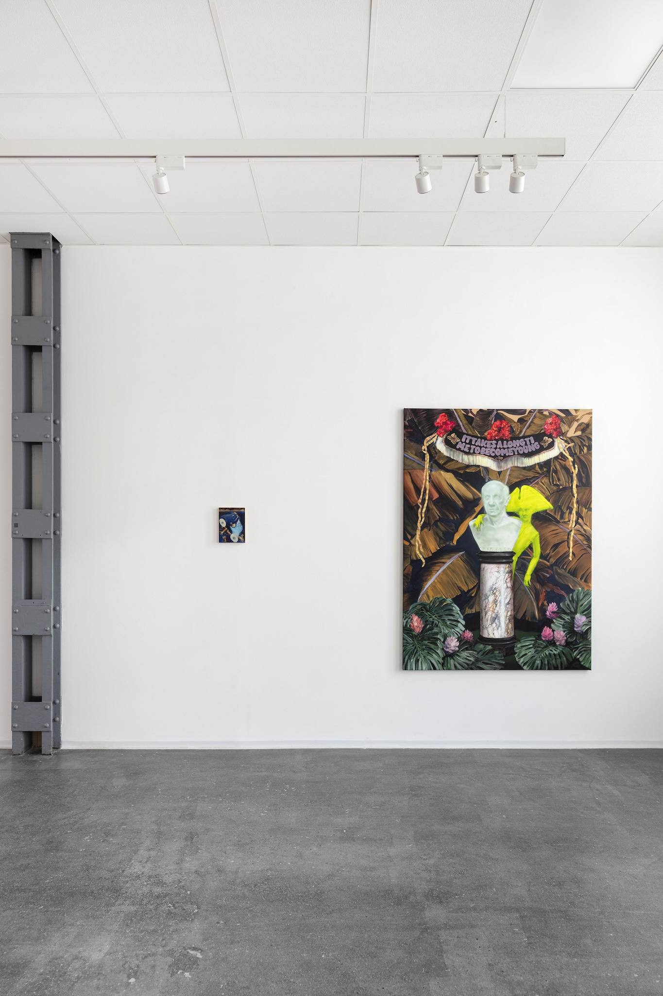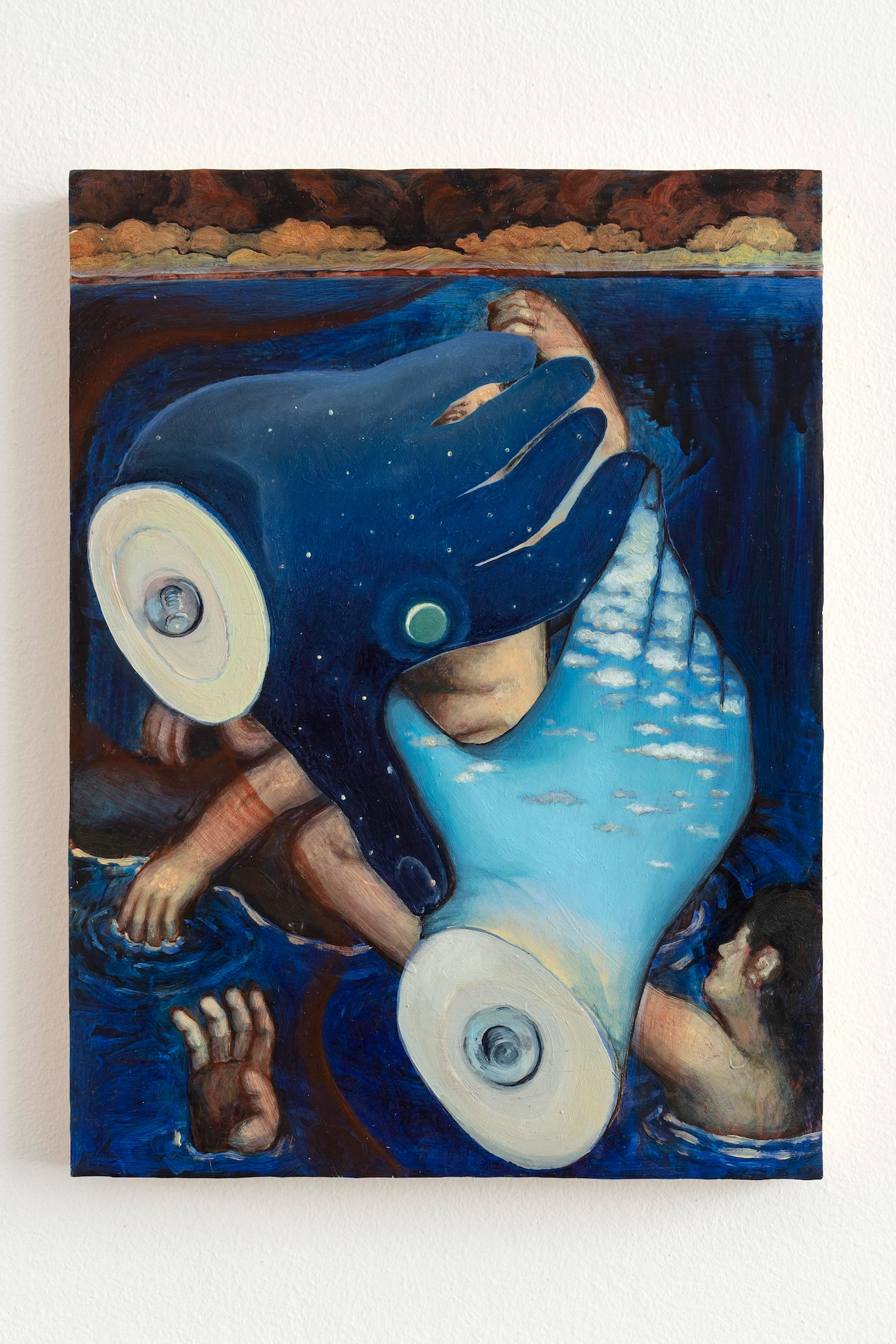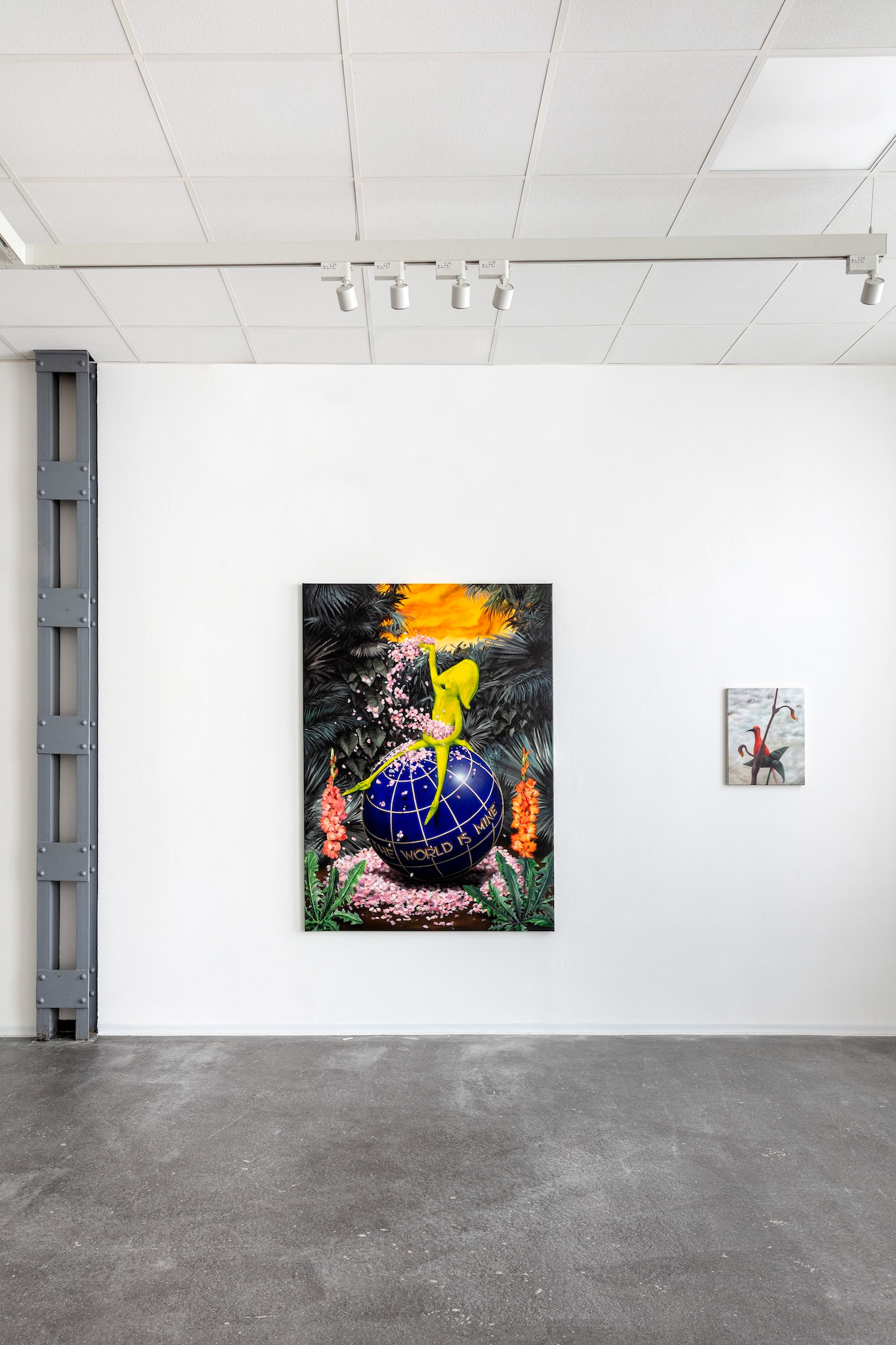 The selected works draw from personal experiences as communicated through original mythologies and a unique library of symbols. The artists construct their worlds of painting in alignment with updated principles and forms of Surrealism. Traditional storylines are replaced by mystification, fantasy, automatism, and deliberate distortion. This results in a complex visual-narrative landscape that combines intimate experiences with universal themes, while we witness the abandonment of the rational in favour of intuitive, emotional, or irrational practices.
