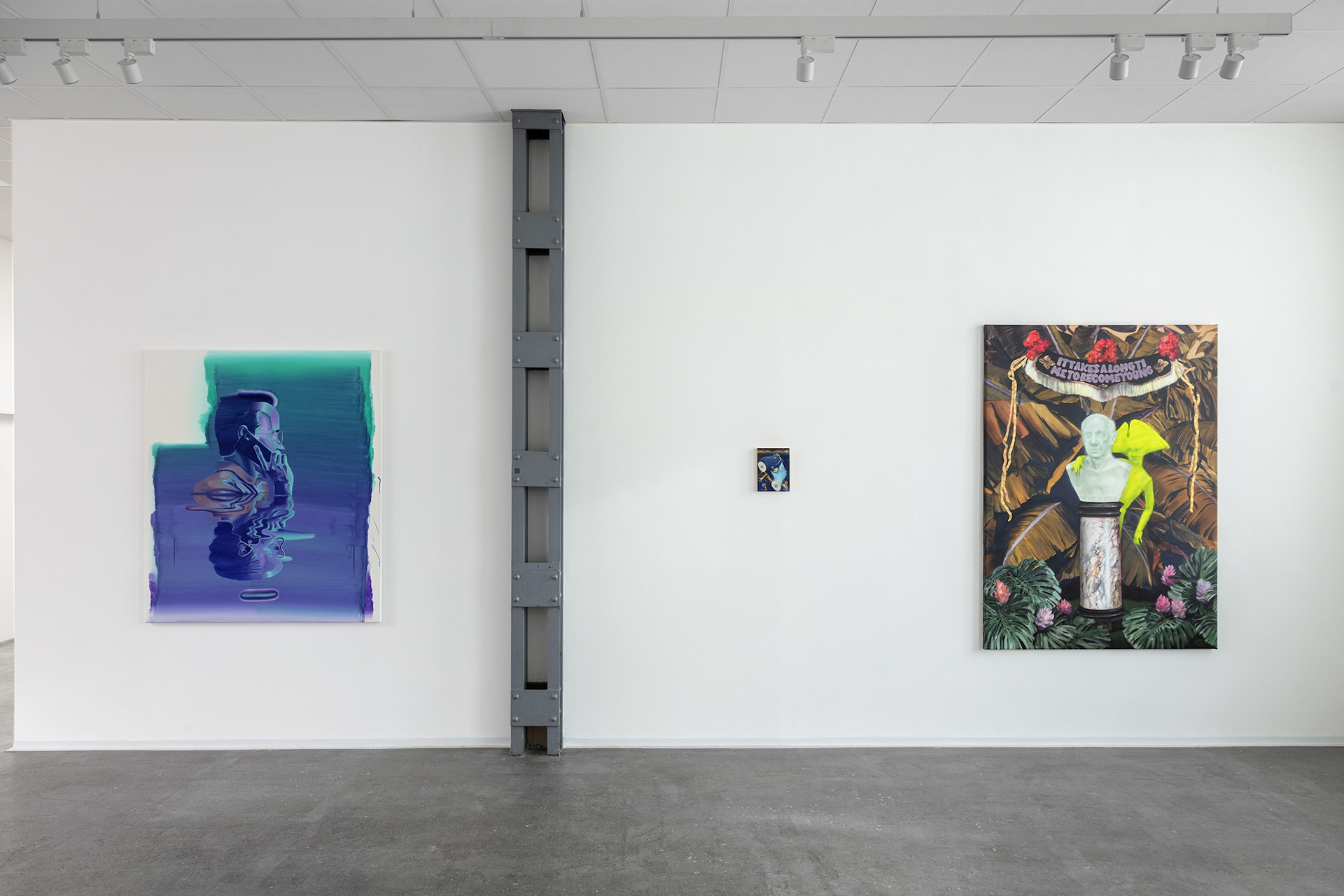 International group exhibition What If I Hypnotize You? features a selection of recent works by contemporary painters based in Austria, Hungary, Slovakia and Belgium. Their connection builds on and develops past encounters or potential common circuits. Yet it also brings about entirely new and unexpected combinations that allow the works to be looked at from different perspectives. The selection focuses on figurative variations of painting and accentuates multi-layered narratives, at times more intricate plots or ambiguous situations.